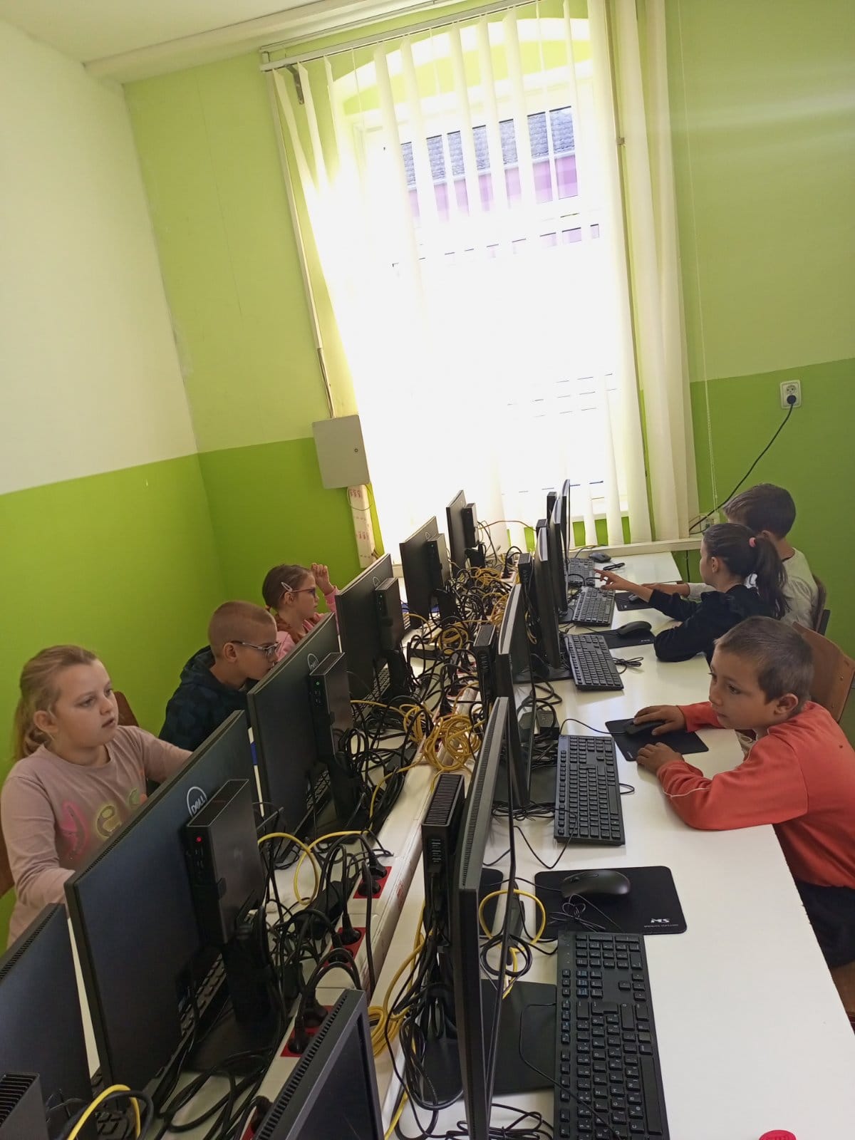 У издвојеном одељењу у Санаду мали информатичари први пут у информатичком кабинету. Дигитални свет одрађен баш онако како треба. Деца су одушевљена, а цртежи прелепи. Браво!