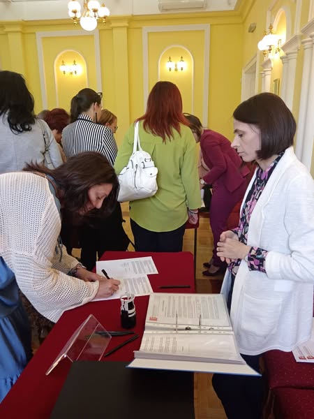 Tanja Lončina, a Jovan Popović Általános Iskola igazgatója 2025. július 11-én, pénteken részt vett a „Szorgos kezek munkái – kreatív ötletek az asztalon” című projekt szerződésének aláírásán. Az Oktatási Minisztérium forrásokat különített el az általános iskolák diákszövetkezeteinek felszerelésére, iskolánk pedig 204 304,25 dinárt kapott.