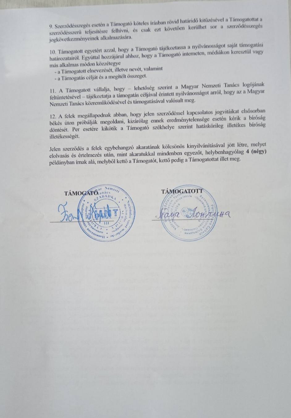 Nyertes pályázat szerződésének aláírása