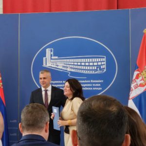 Славица Ђукић Дејановић, министар просвете и спорта и Милош Благојевић, помоћник министра просвете у сектору средњег образовања уручили су уговоре.